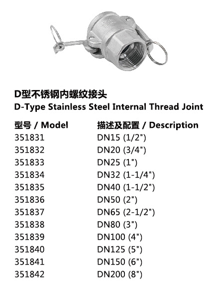 ? D型不銹鋼內(nèi)螺紋接頭